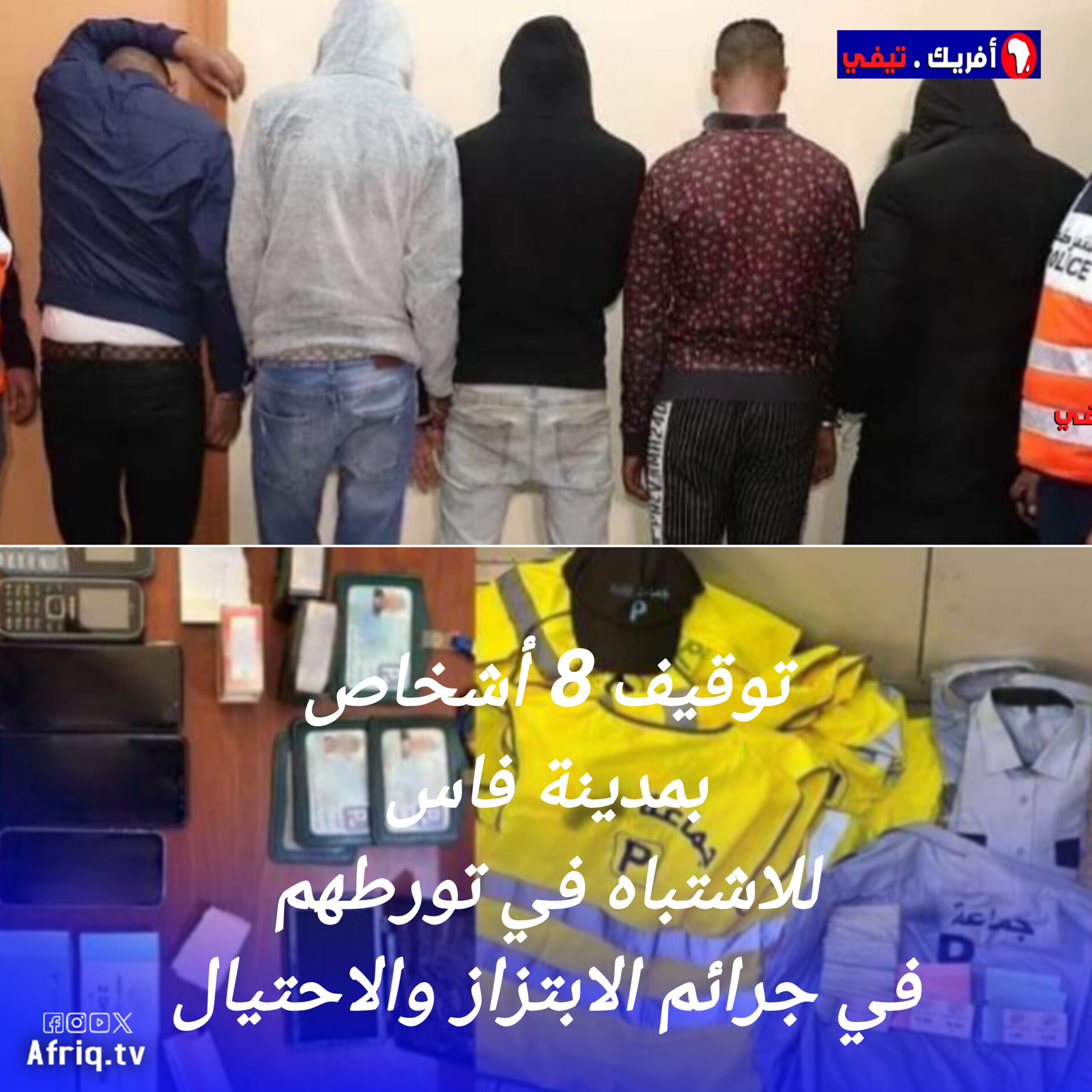 تمكنت عناصر الفرقة الوطنية للشرطة القضائية بتنسيق مع مصالح المديرية العامة لمراقبة التراب الوطني، يوم الثلاثاء 13 غشت الجاري، من توقيف ثمانية أشخاص بمدينة فاس، وذلك للاشتباه في ارتكابهم لأفعال الابتزاز والتزوير واستعماله وانتحال صفة ينظمها القانون.