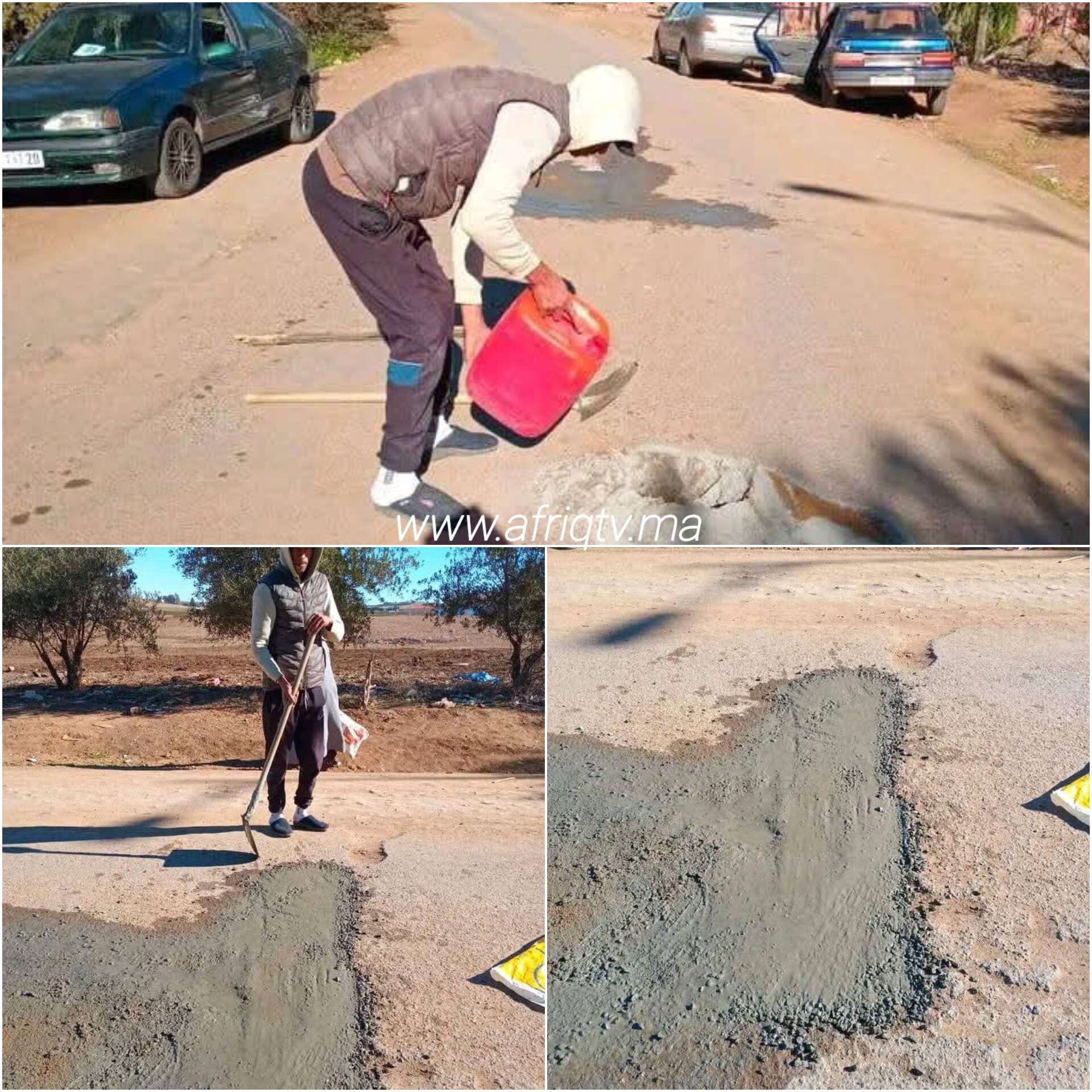 شباب الخميسات يتطوعون لإصلاح المسالك الطرقية و المسؤولين في سبات عميق